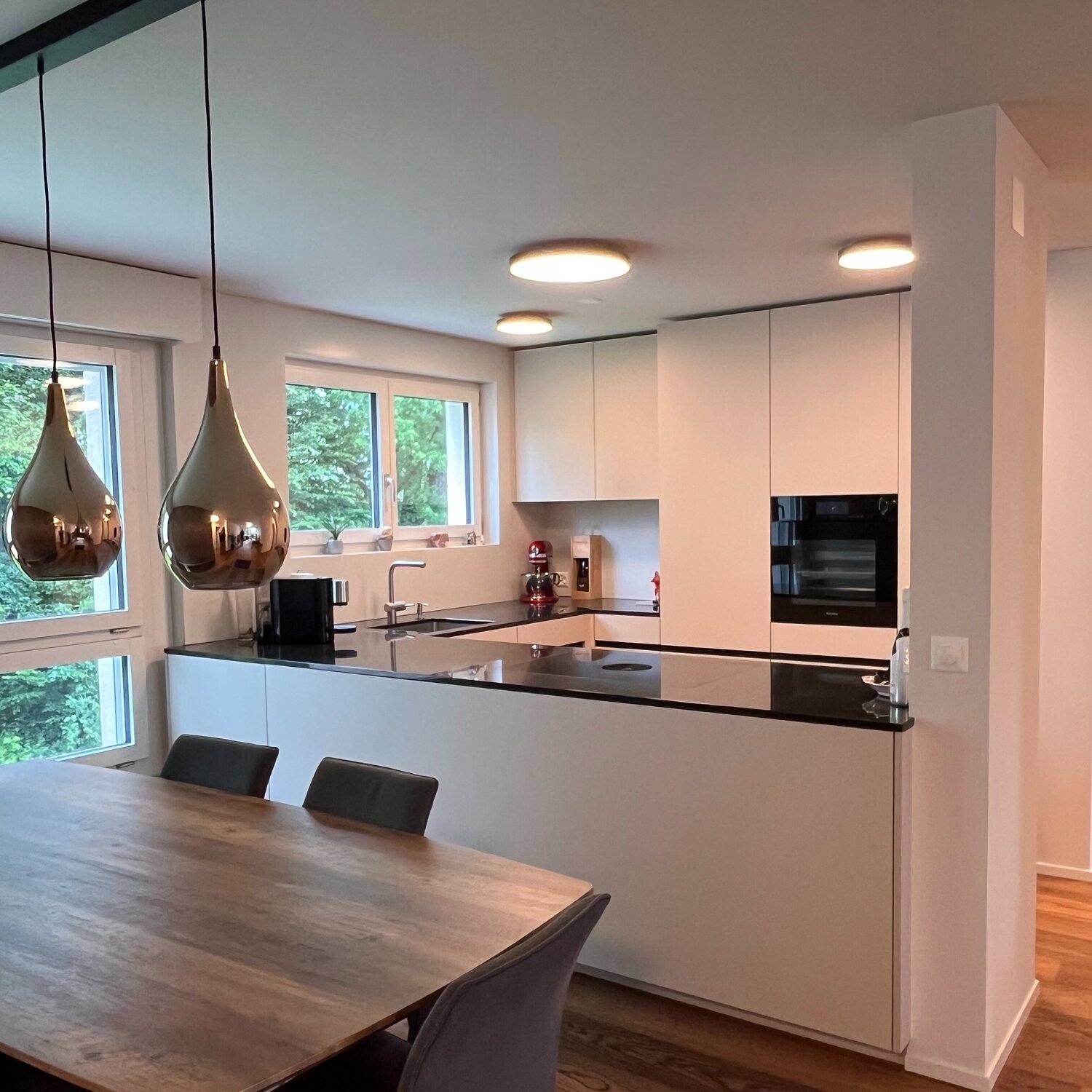 Hier durften wir eine 5 1/2 Zimmerwohnung für die neuen Besitzer komplett sanieren. Die Wohnung mit Baujahr aus den 70er Jahren wurde bis auf den Rohbau zurück gebaut inkl. Schadstoffsanierung. Durch den Abbruch von einzelnen Wänden und dem alten Cheminée wurde ein grosszügiges Wohnzimmer, Esszimmer mit offener Küche geschaffen. Ebenfalls wurde die kleine Gästetoilette vergrössert und zu einem zweiten Badezimmer umgebaut. Dieser Umbau zeigt, dass auch alte Wohnungen Ihre Modernität zurückgewinnen können...